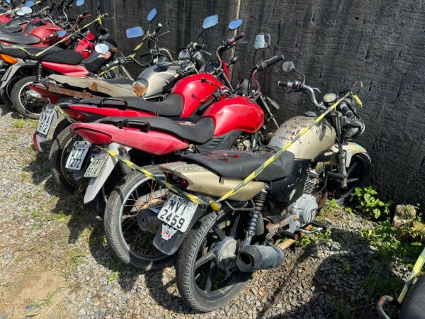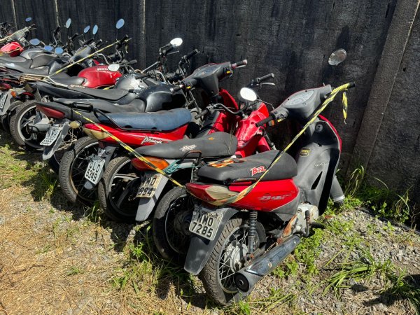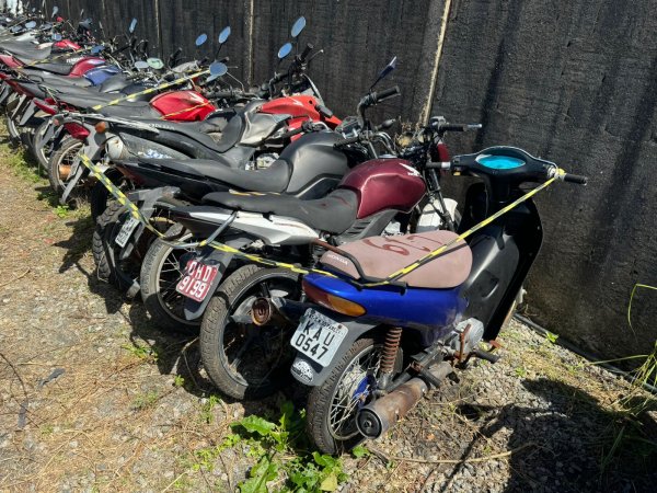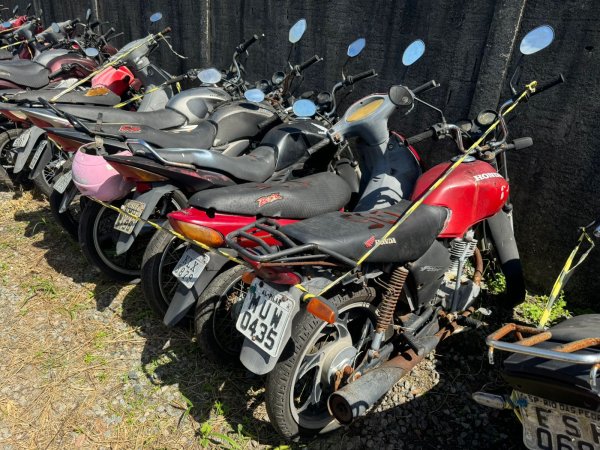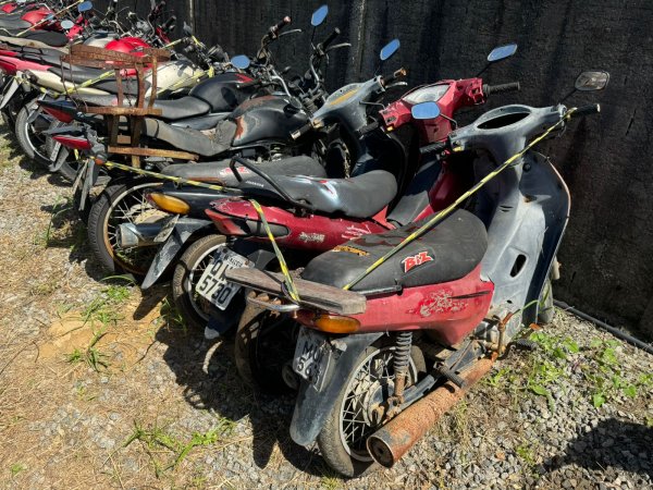 43A-YAMAHA/FAZER YS250, ANO/MOD 2010/2011, COR VERMELHA (SUCATA C/MOTOR APROVEITÁVEL). || 43B-HONDA/BIZ 125 KS, ANO/MOD 2009/2010, COR VERMELHA (SUCATA C/MOTOR APROVEITÁVEL). || 43C-DAFRA/SPEED 150, ANO/MOD 2009/2010, COR AMARELA (SUCATA C/MOTOR APROVEITÁVEL). || 43D-HONDA/POP100, ANO/MOD 2010/2011, COR ROXA (SUCATA C/MOTOR APROVEITÁVEL). || 43E-HONDA/CG 150 TITAN KS, ANO/MOD 2005/2005, COR PRETA (SUCATA C/MOTOR APROVEITÁVEL).