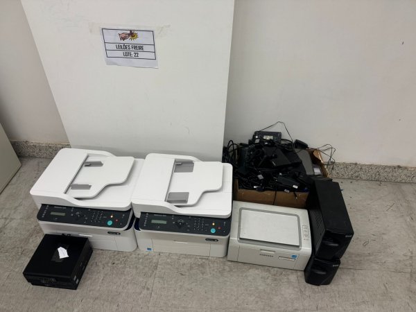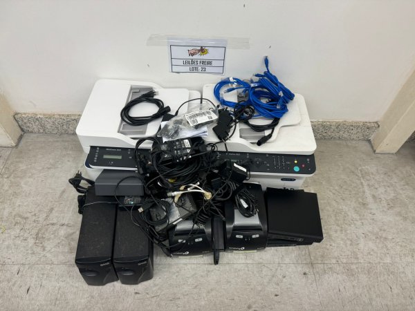 02 IMPRESSORAS MULTIFUNCIONAIS A LASER XEROX, 01 IMPRESSORA A LASER SAMSUNG, 01 IMPRESSORA / CRACHÁS E CARTÕES, 03 CPU’S, 02 ESTABILIZADORES, SWITCHES E PERIFERICOS.