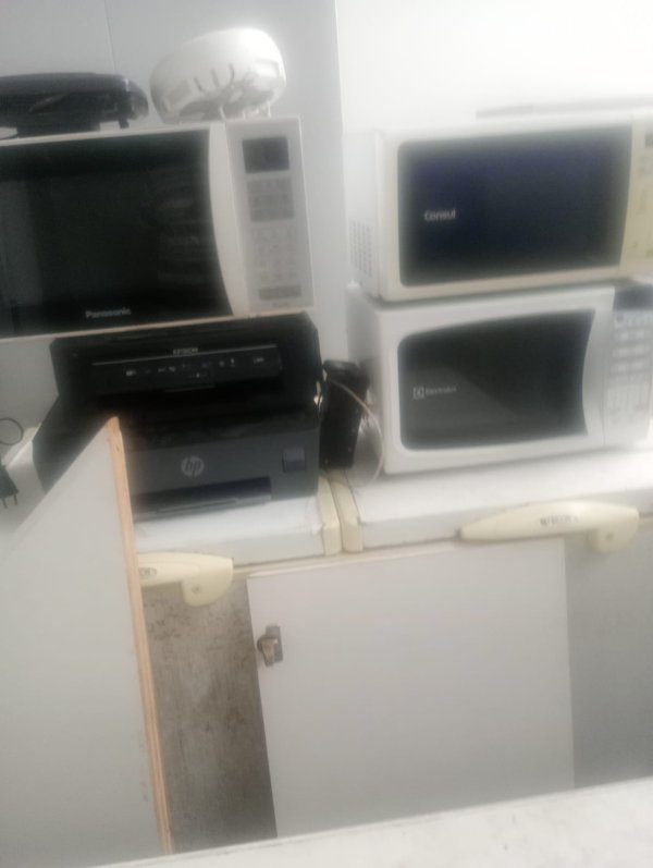 GRANDE QUANTIDADE DE IMPRESSORAS, CPU’S, MONITORES, COMPUTADOR, TECLADOS, ESTABILIZADORES, FORNO, MICROONDAS E TELEVISÃO.