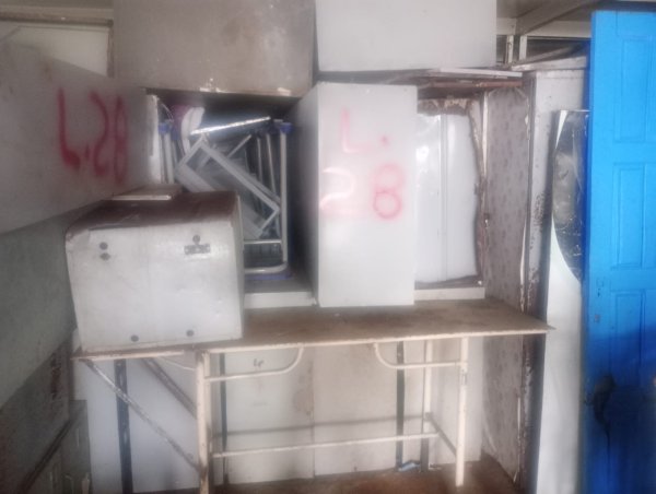 GRANDE QUANTIDADE DE VENTILADORES, ARMÁRIOS E TAMPO DE CADEIRAS.