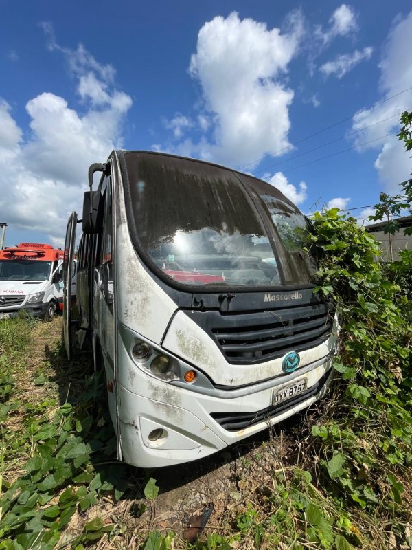 ÔNIBUS VW MASCA GRANMICRO 9.160, ANO/MOD 2013/2014, COMBUS DIESEL, COR BRANCA, PLACA OYX8757. (COM MOTOR E CAIXA, PARADO)