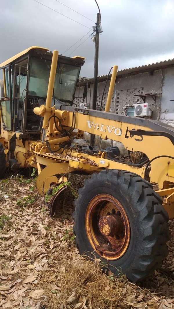003 - MOTONIVELADORA VOLVO. (PARADA, COM PNEUS RESSECADOS, COM MOTOR E CAIXA)