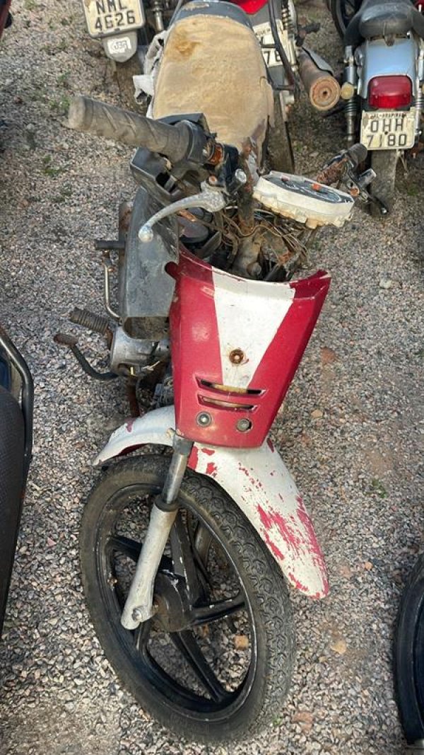 HONDA/POP 110I, ANO/MOD N/I/N/I, COR VERMELHA, COMBUS GASOLINA, PLACA N/I - N/I, RENAVAM N/I, CHASSI N/I, Nº MOTOR N/I, LOC. PÁTIO MACEIÓ (CLASSIFICAÇÃO: SUCATA INSERVÍVEL NÃO IDENTIFICADO). OBSERVAÇÕES: CHASSI E MOTOR ADULTERADOS, VEÍCULO ORIGINAL NÃO IDENTIFICADO, SUCATA INSERVÍVEL