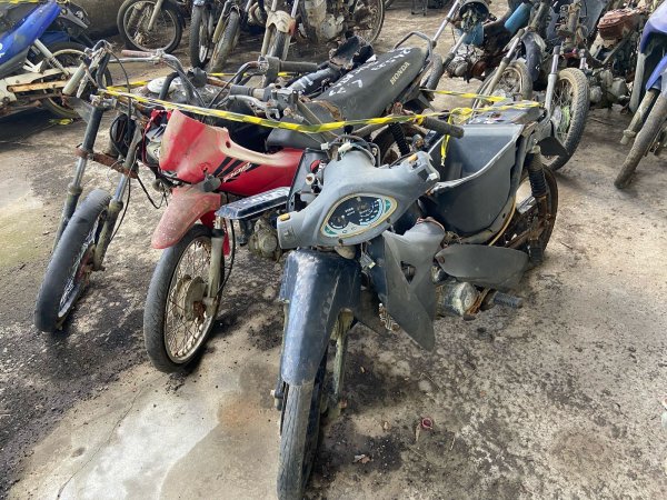 HONDA/CG 125 TODAY, COR PRETA, ANO/MOD 1990/1990, PLACA GRU9436 - MG, RENAVAM 247970867, CHASSI DESTRUÍDO, Nº MOTOR TROCADO (SUCATA INSERVÍVEL - MOTOR INSERVÍVEL). // HONDA/POP100, COR VERMELHA, ANO/MOD 2007/2007, PLACA MUU7254 - AL, RENAVAM 926840932, CHASSI 9C2HB02107R028920, Nº MOTOR HB02E17028920 (SUCATA APROVEITÁVEL - MOTOR SERVÍVEL). // I/CHARMING BULL KRC50, COR PRETA, ANO/MOD 2013/2013, PLACA S/PLACA107 , CHASSI LTEPCBLB1D4001008, Nº MOTOR 1P39FMB13021008 (SUCATA APROVEITÁVEL - MOTOR SERVÍVEL). // CG 150 TITAN ES - HONDA, COR AZUL, ANO/MOD 2006/2006, PLACA S/PLACA108 , CHASSI 9C2KC08506R863047, Nº MOTOR KC08E56863047 (SUCATA INSERVÍVEL - MOTOR INSERVÍVEL).