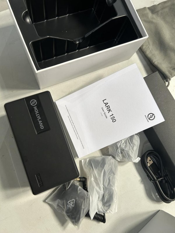 MICROFONE, HOLLYLAND, LARK 150, PRETO (1 UNIDADE - NOVO - TA.469423). // MICROFONE, STAGE MIC, DOUBLE CHANNEL, PRETO (1 UNIDADE - NOVO - TA.511658). // MICROFONE, STAGE MIC, DOUBLE MIC, PRETO (1 UNIDADE - NOVO - TA.513486). // MICROFONE, STAGE MIC, DOUBLE CHANNEL, CINZA E AZUL (1 UNIDADE - NOVO - TA.515373). // SISTEMA DE MICROFONE DUPLO SEM FIO, SENNHEISER, EW135G4, PRETA (1 UNIDADE - NOVO - TA.522715).
