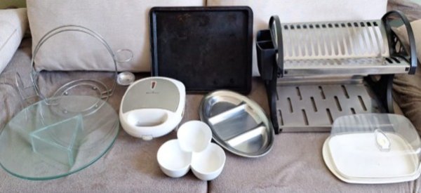 003 - 01 ESCORREDOR, 01 BOLEIRA, 02 PETISQUEIRA, 01 SANDUICHEIRA, 01 SUPORTE P/PRATO, 01 ASSADEIRA, 01 PORTA ALIMENTOS, 01 CAIXOTE, 01 REFLETOR, 0...