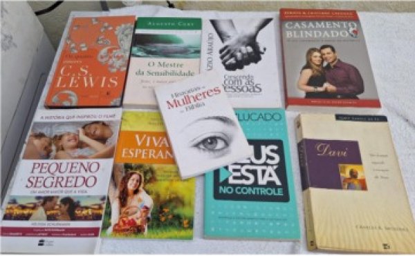 005 - 01 ÁLBUM P/FOTOS, 01 NOTEBOOK DE BRINQUEDO, FLORES DE PLÁSTICO, LIVROS DIVERSOS, 01 CAPACETE TAM 58, 01 CAPA DE CHUVA, 01 MINI GELADEIRA, 29...