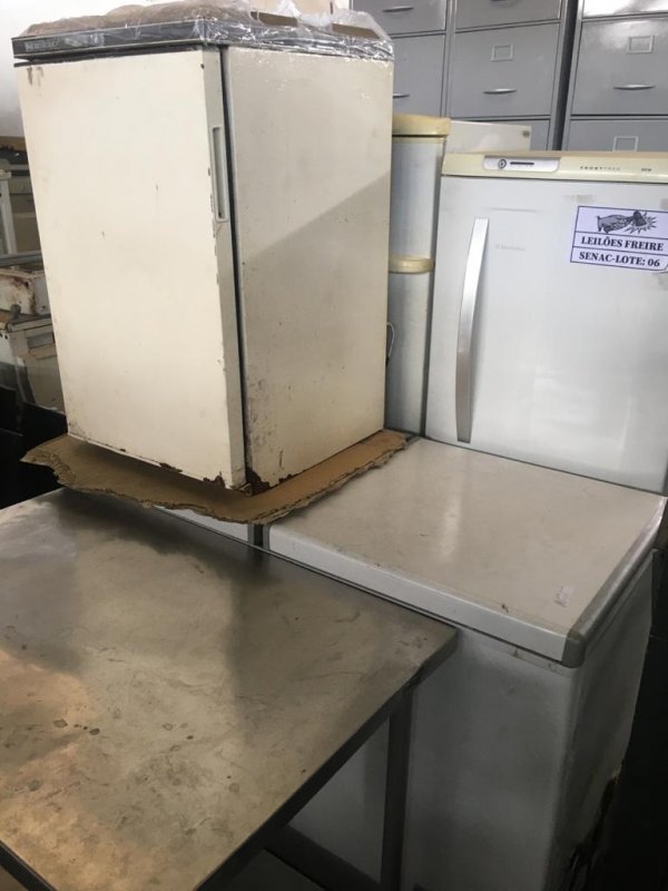 01 FREEZER HORIZONTAL 220V. 01 FREEZER VERTICAL 2V. 197L-CONSUL, 01, 01 REFRIGERADOR ELETROLUX RFE38 220V, 01 FRIGOBAR MOD. FLAT. HOTEL CAP. 150L, 220V E 01 MESA DE INOX.