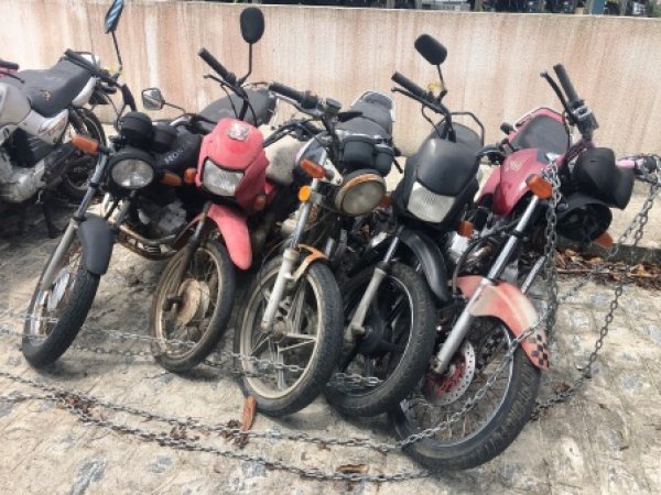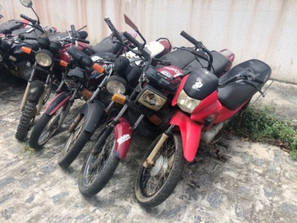 HONDA/CG 125 TITAN KS, PLACA KLK3711, ANO/MOD 2003/2004, COR VERMELHA, CHASSI 9C2JC30104R077538, MOTOR JC30E14077538, UF AL,SUCATA COM MOTOR APROVEITÃVEL, HONDA/CG 125 TITAN ES, PLACA MVB2629, ANO/MOD 2001/2002, COR AZUL, CHASSI 9C2JC30202R102898, MOTOR JC30E22102898, UF AL,SUCATA COM MOTOR APROVEITÃVEL, JTA/SUZUKI AN125, PLACA MVI7358, ANO/MOD 2006/2007, COR VERMELHA, CHASSI 9CDCF47AJ7M011708, MOTOR F472BR111708, UF AL,SUCATA SEM MOTOR APROVEITÃVEL, HONDA/CG 150 TITAN KS, PLACA NMB3020, ANO/MOD 2008/2008, COR VERMELHA, CHASSI 9C2KC08108R356186, MOTOR KC08E18356186, UF AL,SUCATA COM MOTOR APROVEITÃVEL, HONDA/CG150 TITAN MIX ES, PLACA NMH8146, ANO/MOD 2010/2010, COR VERMELHA, CHASSI 9C2KC1620AR051409, MOTOR KC16E2A051409, UF AL,SUCATA COM MOTOR APROVEITÃVEL.