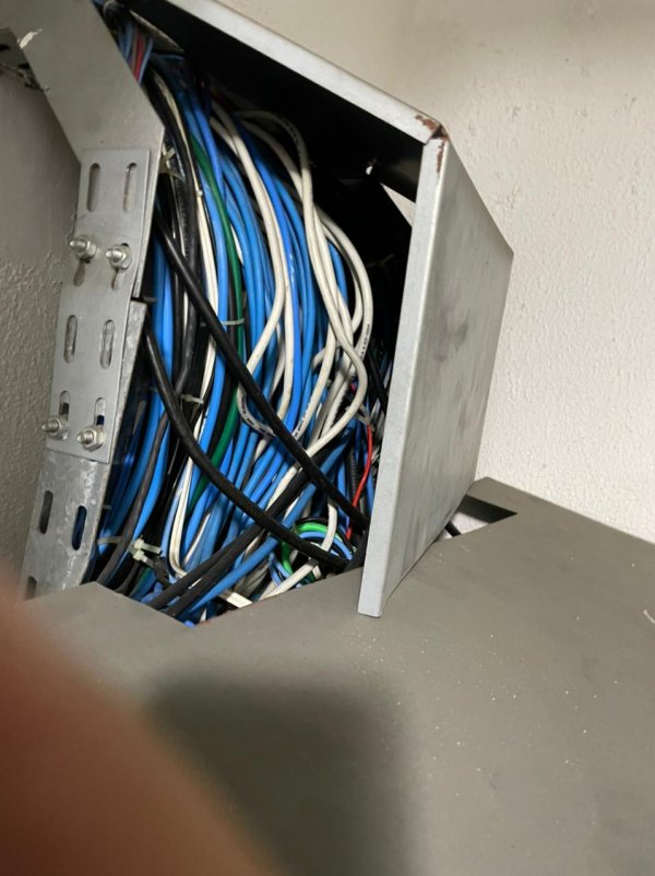 054 - 02 PORTAS DE FERRO, QUADROS ELÉTRICOS C/ BARRAMENTOS, DISJUNTORES E TUBULAÇÃO DE PASSAGEM P/ FIOS.