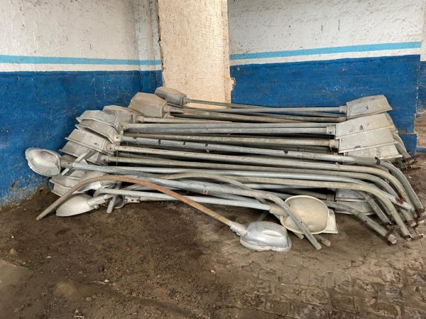 034 - DIVERSAS CALHAS DE FIBRA E POSTES GALVANIADOS P/ ILUMINAÇÃO