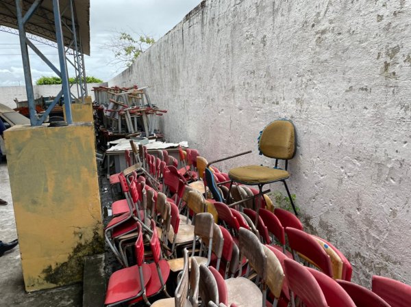 032 - DIVERSAS CARTEIRAS E MESAS ESCOLARES SUCATEADAS.