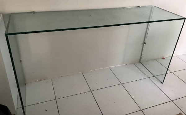 01 APARADOR DE VIDRO - 1.70 COMPRIMENTO / 0.90 ALTURA E 0.49 PROFUNDIDADE.