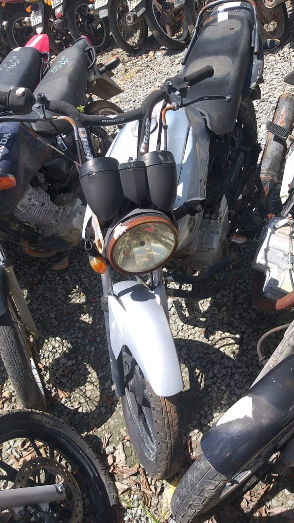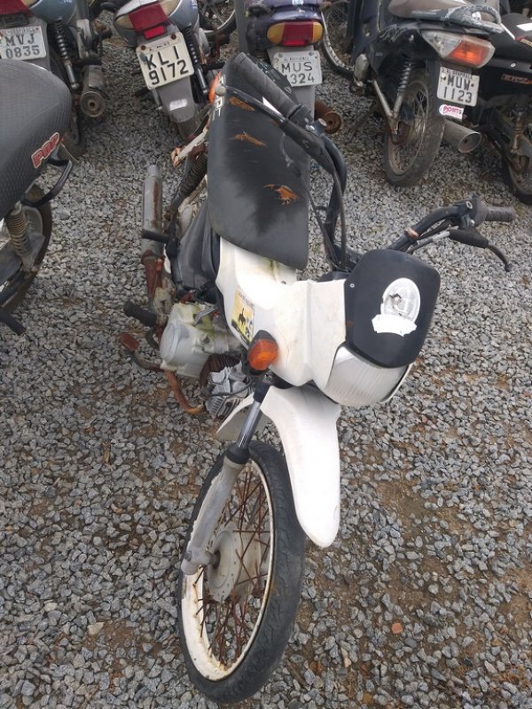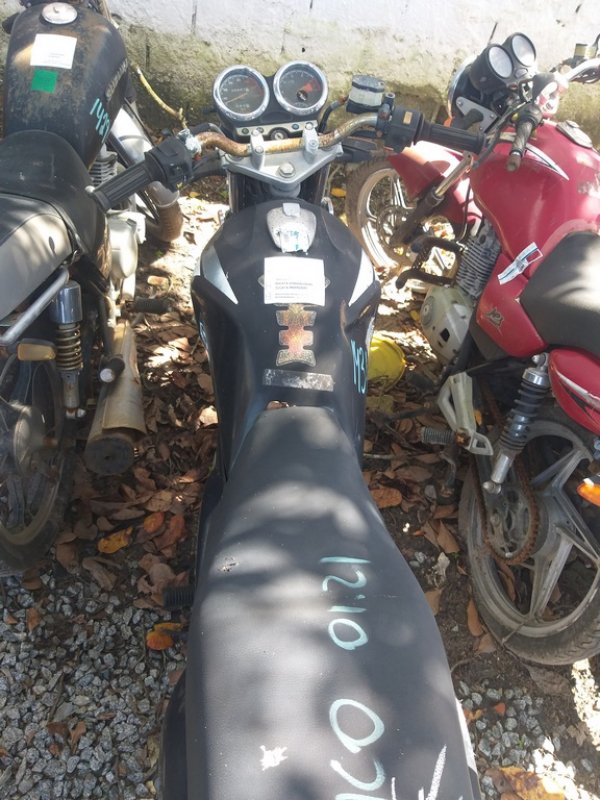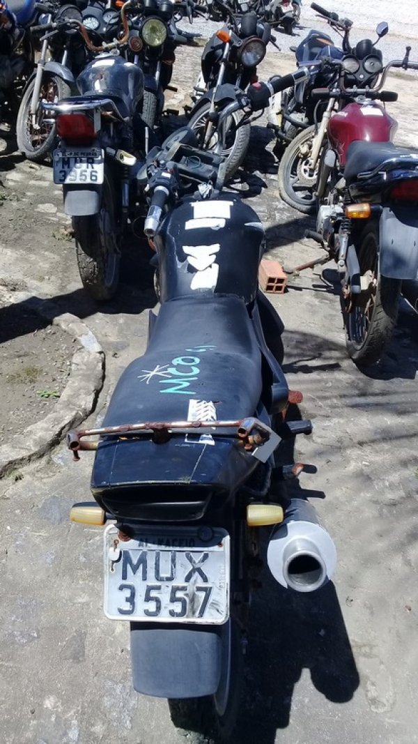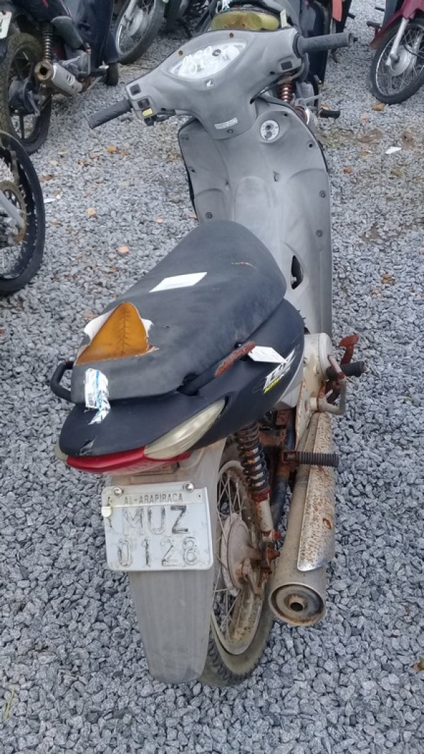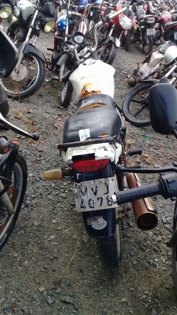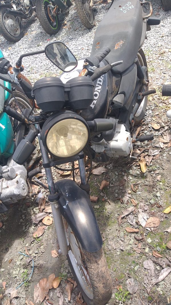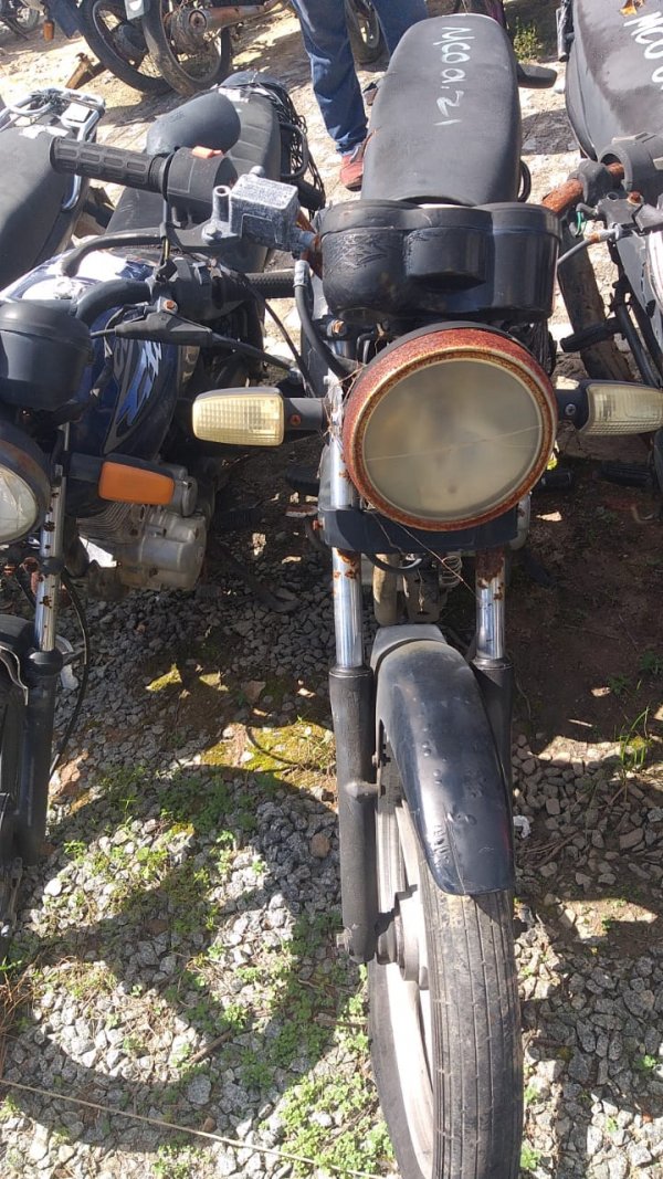 VEÍCULO BATIDO, PLACA, RABETA, CARENAGENS, PAINEL E PARA-LAMA DANIFICADOS, BANCO RASGADO, FAROL, RETROVISORES E PISCAS DIANTEIRO AUSENTES, CHASSI EM ESTADO AVANÇADO DE OXIDAÇÃO, DECALQUE LEGÍVEL, TRATAMENTO, REGULARIZAÇÃO OU REMARCAÇÃO POR CONTA DO COMPRADOR.