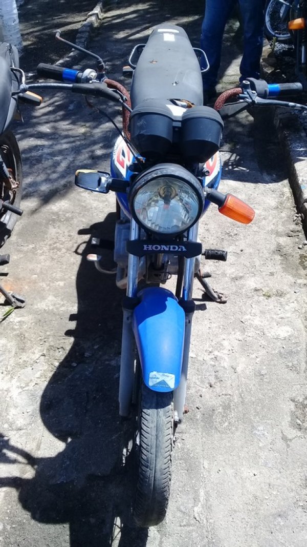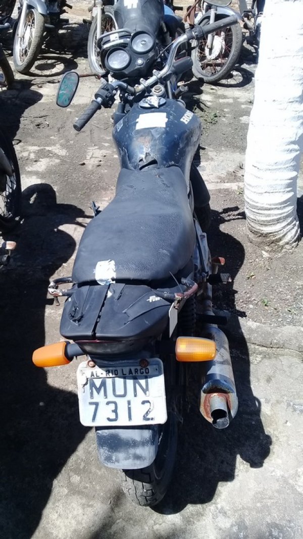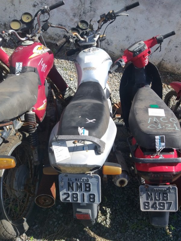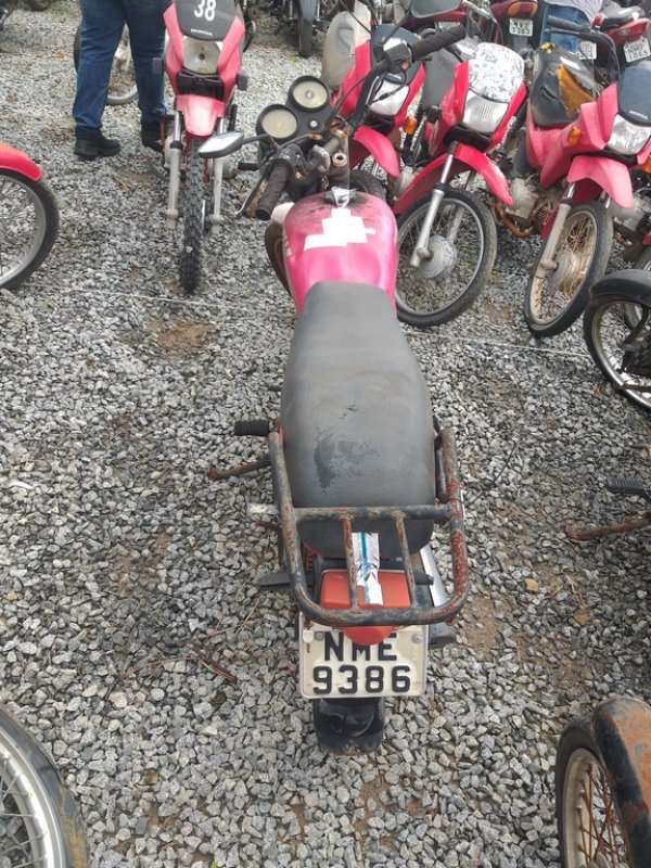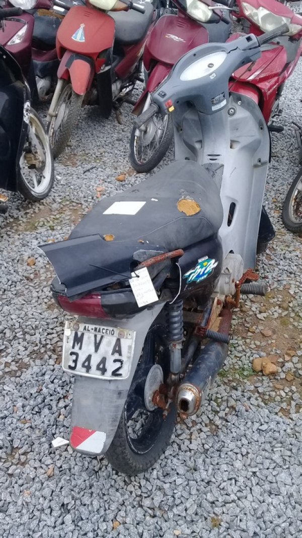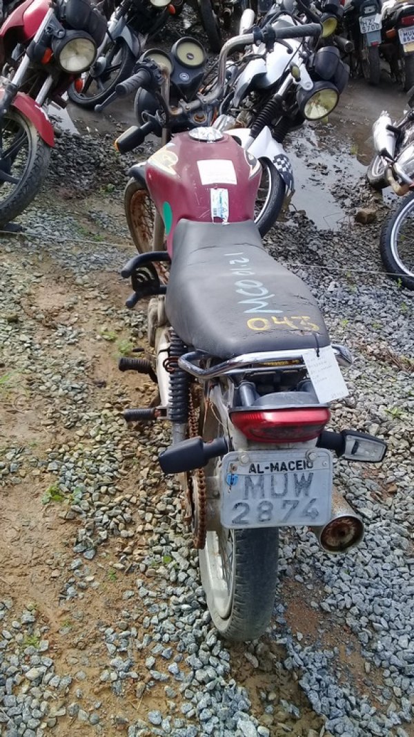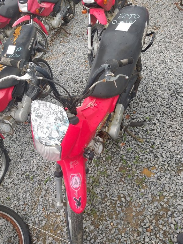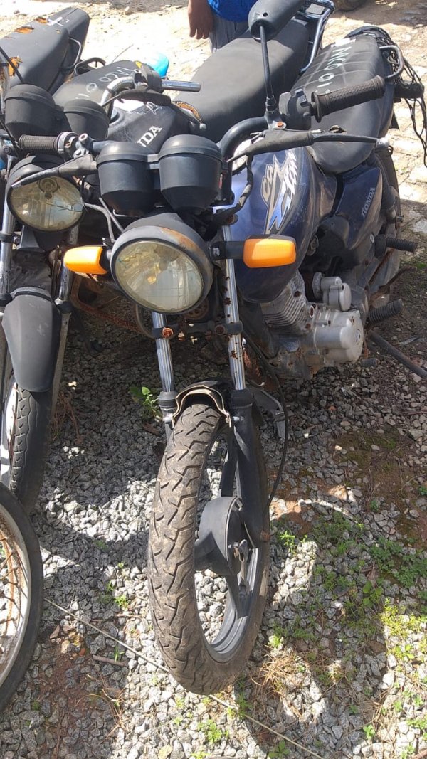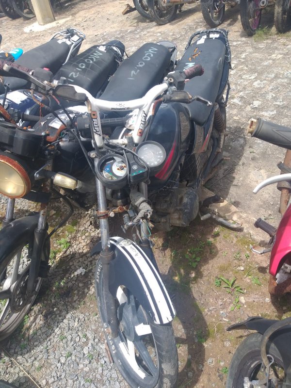 VEÍCULO BATIDO, PLACA, RABETA, CARENAGENS, PAINEL E PARA-LAMA DANIFICADOS, BANCO RASGADO, FAROL, RETROVISORES E PISCAS DIANTEIRO AUSENTES, CHASSI EM ESTADO AVANÇADO DE OXIDAÇÃO, DECALQUE LEGÍVEL, TRATAMENTO, REGULARIZAÇÃO OU REMARCAÇÃO POR CONTA DO COMPRADOR.