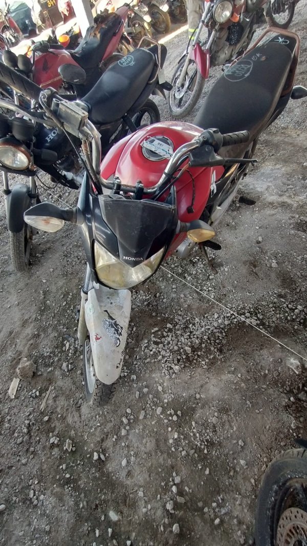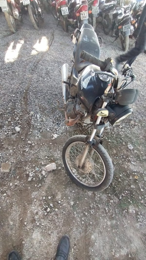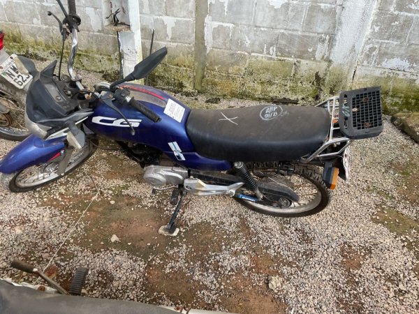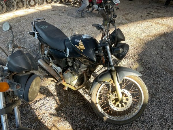 VEÍCULO COM MUDANÇAS DE CARACTERÍSTICAS, LACRE DA PLACA ROMPIDO, BANCO DANIFICADO, TANQUE COM RISCOS E MOSSAS, CARENAGENS TRASEIRAS, RETROVISORES E TAMPA DO MOTOR AUSENTES,  CHASSI EM ESTADO AVANÇADO DE OXIDAÇÃO, DECALQUE LEGÍVEL,REGULARIZAÇÃO, TRATAMENTO OU  REMARCAÇÃO POR CONTA DO COMPRADOR.
