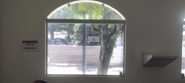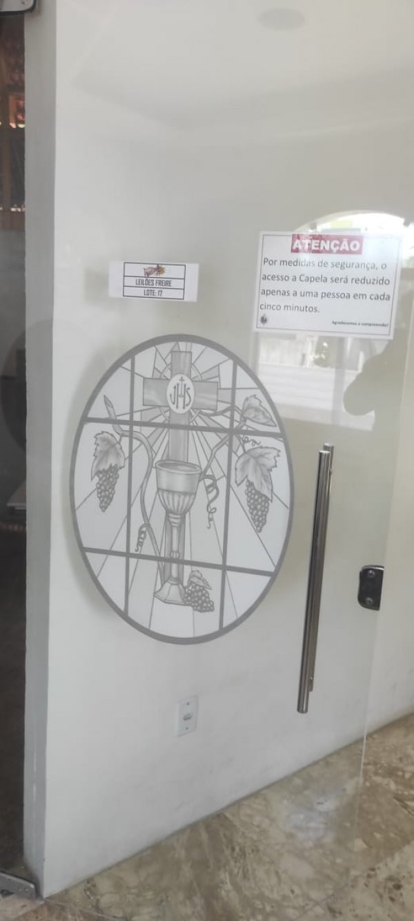 PORTAS DE VIDRO DA IGREJA LADO ESQUERDO COM FORRA E BADANA SUPERIOR EM VIDRO MADEIRA SUPERIOR, 2.80 X 1,23 DE LARGURA CADA PORTA, MAIS VIDRO LATERAL DE 2,80 X 2,0 .