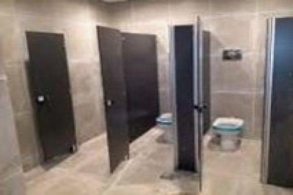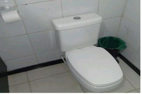 03 BACIAS SANITÁRIAS COM ASSENTOS PLÁSTICOS, 01 BALCÃO DE GRANITO VERDE C/ 02 CUBAS E TORNEIRAS EM PLÁSTICO, 01 PIA DE PAREDE C/ TORNEIRA E 01 JANELA BASCULANTE DE 0.30 X 0.
