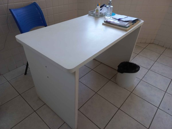 1 CADEIRA PARA ESCRITÓRIO DE RODINHA E COM BRAÇO, 1 CADEIRA PARA ESCRITÓRIO DE RODINHA E SEM BRAÇO, 2 MESAS BRANCAS DE MADEIRA, 1 ARMÁRIO COM 8 PORTAS, 1 CADEIRA DE PLÁSTICO SEM BRAÇO, 1 CADEIRA AZUL SEM RODINHA, 4 PRATELEIRAS DE MADEIRA, 1 NICHO COM 4 DIVISÓRIAS, 1 ARMÁRIO COM 3 PORTAS, 1 AR CONDICIONADO (MARCA SPRINGER 12.000BTUS), 1 LIXEIRO DE MADEIRA, 1 GAVETEIRO COM 4 GAVETAS, TOMADAS E INTERRUPTORES, 1 CAIXA DE SUCATA DE MATERIAL DE INFORMÁTICA, 6 COLCHÕES INFANTIS, 4 PLACAS DE TAPETES TATAMES, 1 PORTA PAPEL TOALHA, 1 PORTA PAPEL HIGIÊNICO