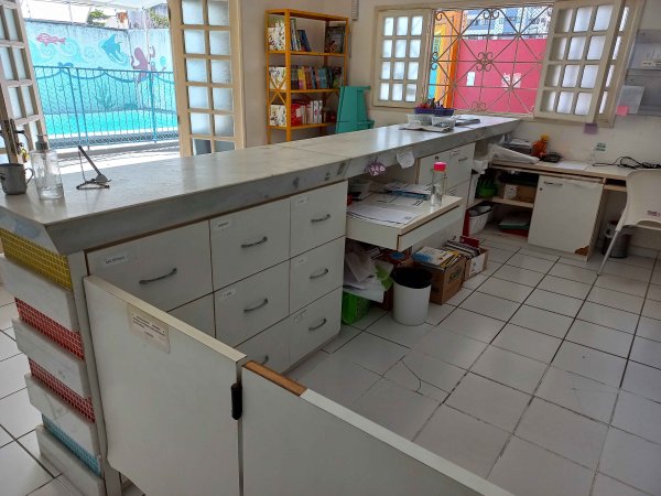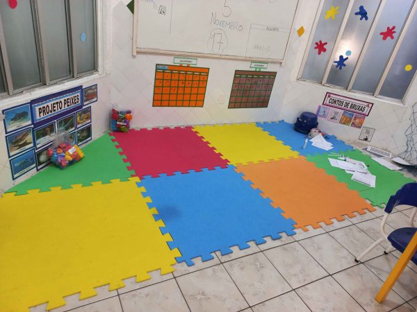 1 NICHO, 1 QUADRO BRANCO, 1 ARMÁRIO GRANDE ORGANIZADOR, 1 AR CONSDICIONADO SPLIT (QUEBRADO), 3 MESAS, TOMADAS E INTERRUPTOR, 1 BANCA VERMELHA INFANTIL COM CADEIRAS, 4 PLACAS DE TAPETES TATAMES, 4 LUMINÁRIAS, 1 JANELA DE ALUMÍNIO COM 6 PEÇAS (HORIZONTAL), 1 JANELA DE ALUMÍNIO DE CORRER, COM 4 PEÇAS.