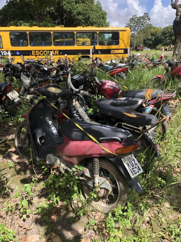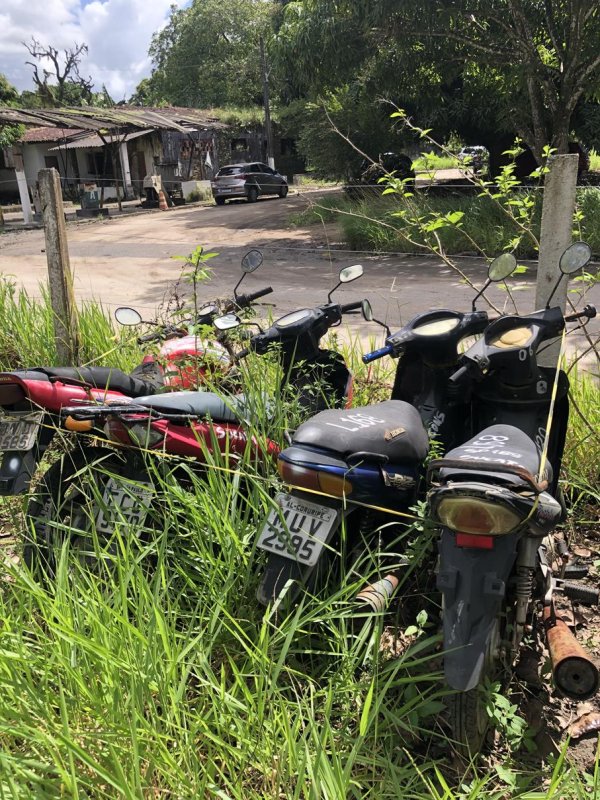 04 MOTOCICLETAS: HONDA/NXR150 BROS MIX ES, 2010/10, PRETA, (SUCATA APROVEITÁVEL); SUNDOWN/HUNTER 100, 2008/08, VERMELHA, (SUCATA APROVEITÁVEL); I/SHINERAY, PRATA, (SUCATA APROVEITÁVEL); DAFRA/RIVA 150, 2013/14, VERMELHA, (SUCATA APROVEITÁVEL)