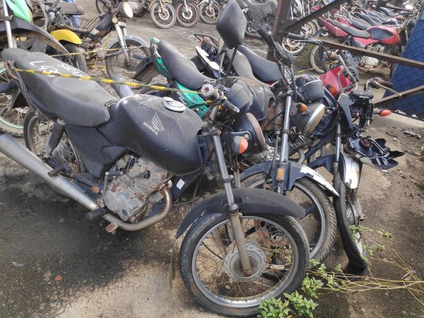 04 MOTOCICLETAS: HONDA/CG 125 TITAN KS, 2003/03, AZUL, (SUCATA APROVEITÁVEL); JTA/SUZUKI EN125 YES, 2008/09, PRATA, (SUCATA APROVEITÁVEL); HONDA/CG 150 TITAN KS, 2008/08, VERMELHA, (SUCATA APROVEITÁVEL); HONDA/CG 150 TITAN ES, 2009/09, CINZA, (SUCATA APROVEITÁVEL)