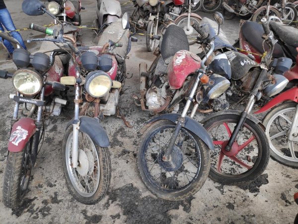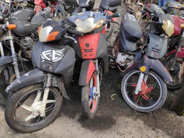 04 MOTOCICLETAS: WUYANG, PRETA, (SUCATA APROVEITÁVEL); HONDA POP 100, 2013/14, PRETA, (SUCATA APROVEITÁVEL); HONDA/NXR150 BROS KS, 2007/07, PRETA, (SUCATA APROVEITÁVEL); HONDA/BIZ 125 KS, 2008/09, AMARELA, (SUCATA APROVEITÁVEL)