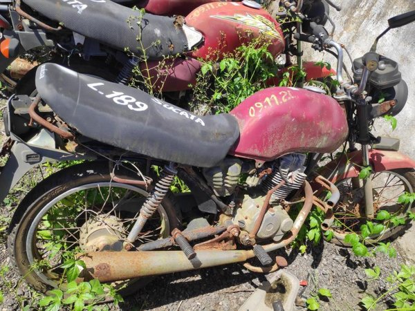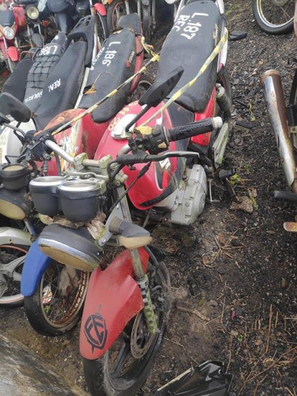 4 MOTOCICLETAS: YAMAHA/YBR125 FACTOR K, 2013/2014, VERMELHA, ORM6215 (SUCATA APROVEITÁVEL) HONDA/CG 125 TODAY, 1994/1994, VERMELHA, MUI1146 (SUCATA APROVEITÁVEL) CG 125: HONDA, 1989/1989, VERMELHA, GNL5903 (SUCATA APROVEITÁVEL) HONDA/CG 150 TITAN KS, 2005/2006, VERMELHA, KLS7226 (SUCATA FERROZA)