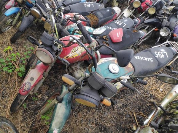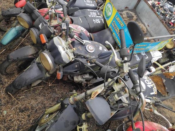 4 MOTOCICLETAS: HONDA/CG 125 TITAN, 1998/1999, VERDE, KIM3012 (SUCATA FERROZA) JTA/SUZUKI EN125 YES SE, 2010/2011, AMARELA, NMK5176 (SUCATA APROVEITÁVEL) HONDA/CG 125 TITAN KS, 2001/2001, VERMELHA, KJY9150 (SUCATA APROVEITÁVEL) HONDA/CG 125 TITAN KS, 2003/2003, VERMELHA, KLY6994 (SUCATA APROVEITÁVEL)