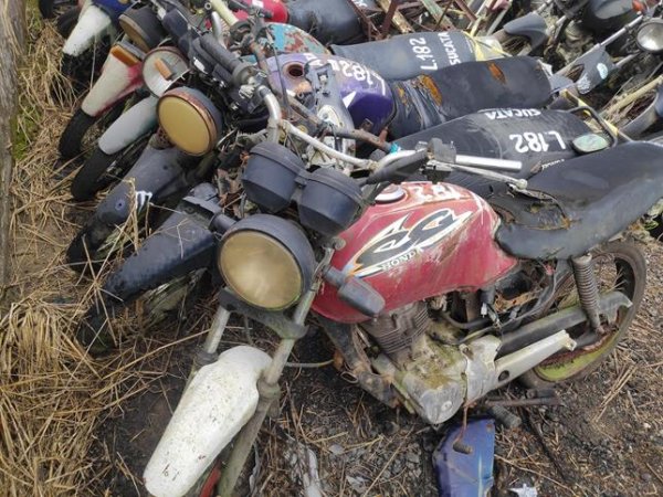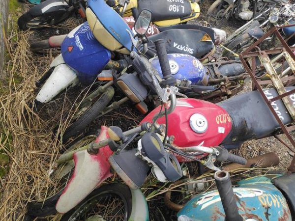 4 MOTOCICLETAS: HONDA/BIZ 125 ES, 2013/2013, PRETA S/, PLACA137 (SUCATA APROVEITÁVEL) HONDA/CG 150 TITAN KS, 2006/2006, PRETA, DNP1607 (SUCATA APROVEITÁVEL) YAMAHA/FACTOR YBR125 E, 2011/2011, VERMELHA, OHB1776 (SUCATA APROVEITÁVEL) YAMAHA/FACTOR YBR125 K, 2011/2011, ROXA, PFO8880 (SUCATA APROVEITÁVEL)