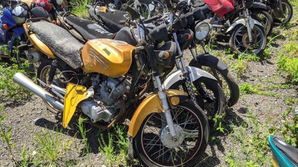 173 - 4 MOTOCICLETAS: HONDA/CG 125 TITAN ES, 2003/2004, VERDE, DHE6545 (SUCATA APROVEITÁVEL) YAMAHA/YBR 125E, 2002/2002, VERMELHA, HZX4688 (SUCATA...