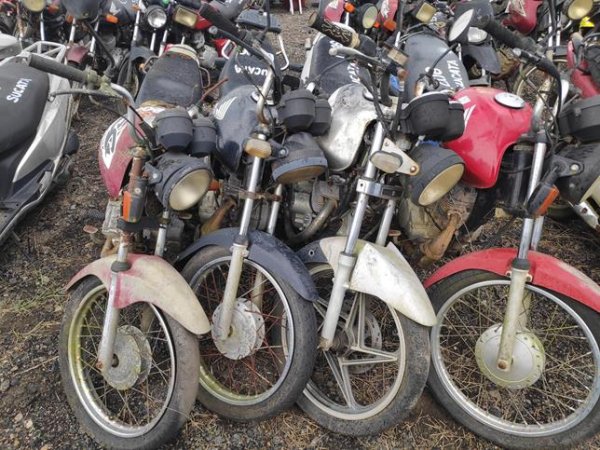 183 - 4 MOTOCICLETAS: YAMAHA/YBR 125E, 2003/2004, PRETA, MVD8678 (SUCATA APROVEITÁVEL) HONDA/CG 125 TITAN, 1996/1996, VERMELHA, MUB0234 (SUCATA AP...