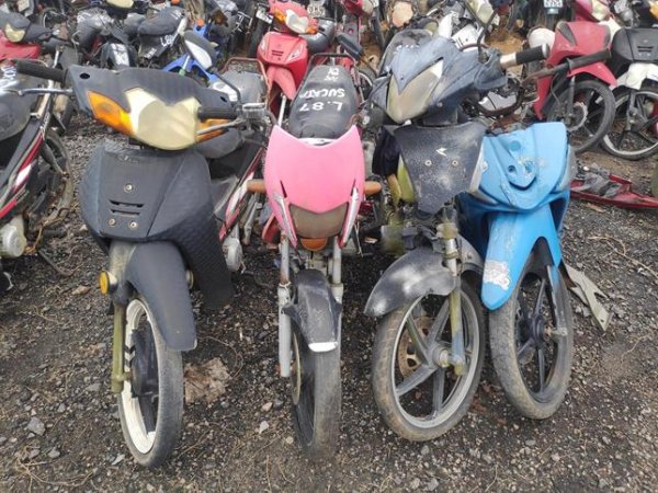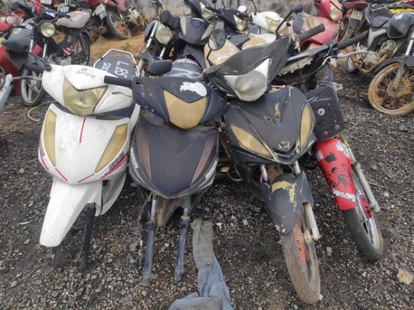 4 MOTOCICLETAS: I/SHINERAY XY 50 Q , PRETA S/, PLACA194 (SUCATA FERROZA) I/SHINERAY XY 50 Q, 2014/2015, BRANCA S/, PLACA40 (SUCATA APROVEITÁVEL) I/SHINERAY XY 50 Q , PRETA S/, PLACA38 (SUCATA APROVEITÁVEL) I/SHINERAY XY 50 Q, 2012/2013, PRATA S/, PLACA39 (SUCATA APROVEITÁVEL)