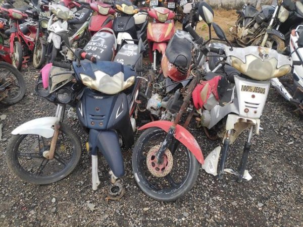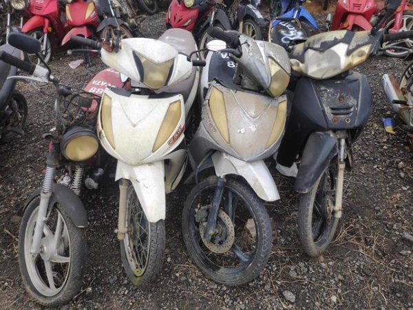 4 MOTOCICLETAS: I/TRAXX JL50Q 2 , PRETA S/, PLACA16 (SUCATA FERROZA) SHINERAY XY 50-Q , VERMELHA S/, PLACA21 (SUCATA FERROZA) DAFRA/ZIG 50, 2012/2013, VERMELHA S/, PLACA22 (SUCATA APROVEITÁVEL) HONDA/BIZ 125 ES, 2010/2010, PRETA, NMH3037 (SUCATA APROVEITÁVEL)