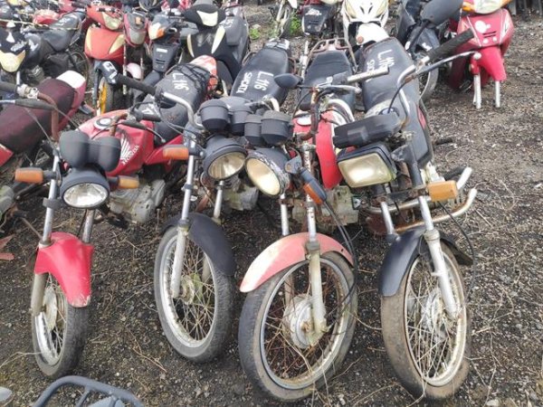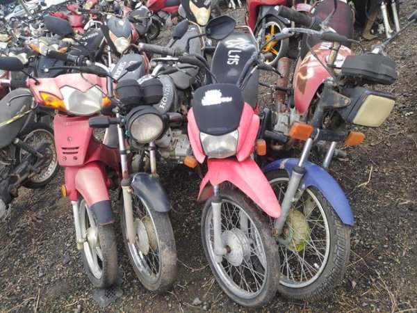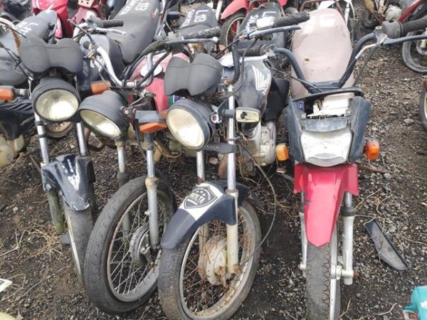 4 MOTOCICLETAS: DAFRA/SPEED 150, 2010/2010, PRETA, NMD8673 (SUCATA APROVEITÁVEL) HONDA/CG 125 FAN, 2008/2008, CINZA, MUX5973 (SUCATA FERROZA) HONDA/CG 125 TITAN KS, 2000/2000, VERMELHA, MUS1497 (SUCATA APROVEITÁVEL) HONDA/CG 125 FAN KS, 2018/2018, PRETA, OHB0498 (SUCATA APROVEITÁVEL)