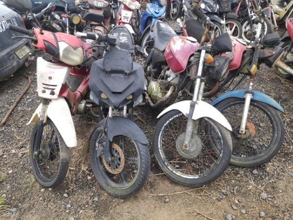 4 MOTOCICLETAS: CG 125 TITAN KS: HONDA, 2003/2004, VERMELHA, MVD8968 (SUCATA APROVEITÁVEL) YAMAHA/YBR 125K, 2005/2005, PRETA, MVE4974 (SUCATA APROVEITÁVEL) HONDA/CG 125 TITAN KSE, 2003/2003, PRATA, MVC2082 (SUCATA APROVEITÁVEL) JTA/SUZUKI EN125 YES SE, 2010/2011, AMARELA, NLZ2183 (SUCATA APROVEITÁVEL)