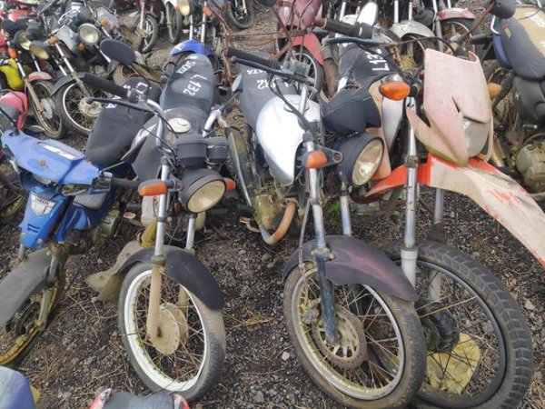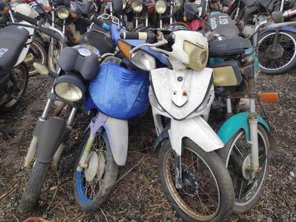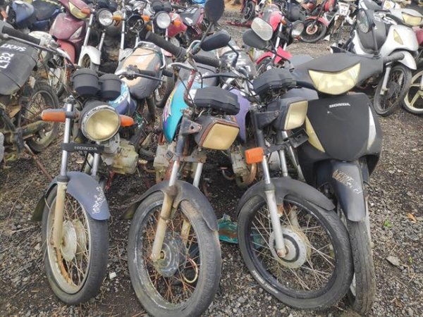 4 MOTOCICLETAS: HONDA/POP100, 2008/2008, PRETA, KHT1366 (SUCATA APROVEITÁVEL) HONDA/CG 125 TITAN KS, 2003/2003, VERMELHA, MUZ1234 (SUCATA APROVEITÁVEL) SUNDOWN/HUNTER 90, 2007/2007, VERMELHA, MUH1964 (SUCATA APROVEITÁVEL) HONDA/BIZ 125 KS, 2006/2006, PRATA, NGB5112 (SUCATA APROVEITÁVEL)