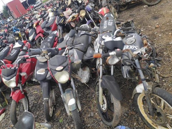 4 MOTOCICLETAS: YAMAHA/YBR 125K, 2003/2004, ROXA, MUY6813 (SUCATA APROVEITÁVEL) JTA/SUZUKI EN125 YES, 2008/2008, VERMELHA, NLX1109 (SUCATA FERROZA) HONDA/CG 150 TITAN KS, 2008/2008, AZUL, ECF6002 (SUCATA APROVEITÁVEL) DAFRA/SPEED 150, 2008/2009, AMARELA, IAK0333 (SUCATA FERROZA)