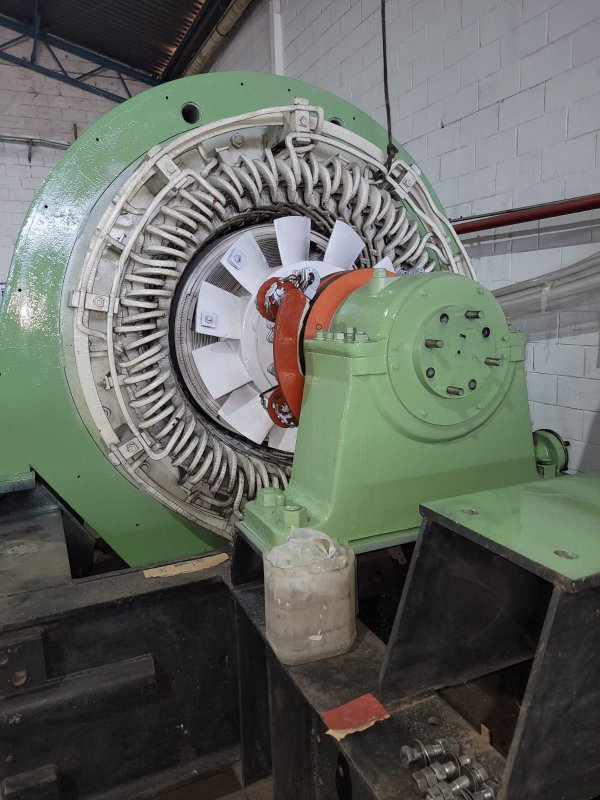 GERADOR DE ENERGIA SIMIENS MOVIDO A VAPOR, GERADOR DE 6250 KVA, SEGUNDARIO 4160V PODE SER MOVIDO A VAPOR DE CALDEIRA MECÂNICA OU HIDRÁULICA.