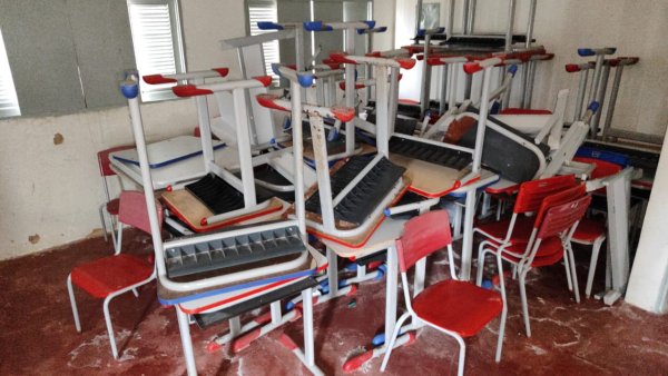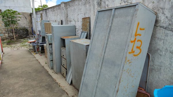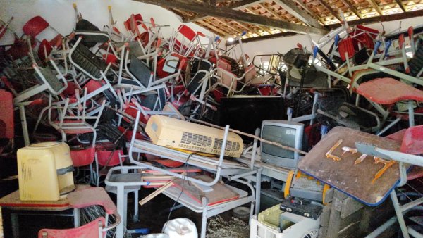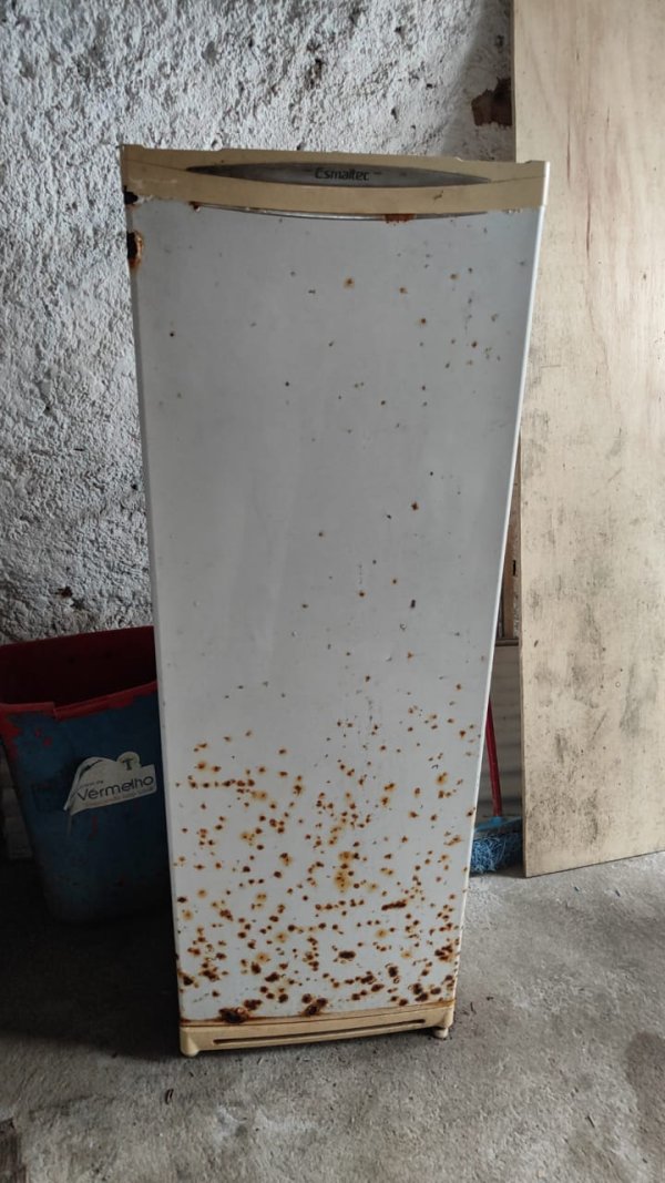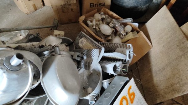 CADEIRAS DE FERRO, 1 BEBEDOURO, 3 IMPRESSORAS, 1 CAIXA DE SOM AMPLIFICADA, DIVERSAS LÂMPADAS FLUORESCENTES COM REATORES, 2 ESTABILIZADORES, 1 FOGÃO INDUSTRIAL, 1 FREEZER ELECTROLUX H400 E 2 VENTILADORES.