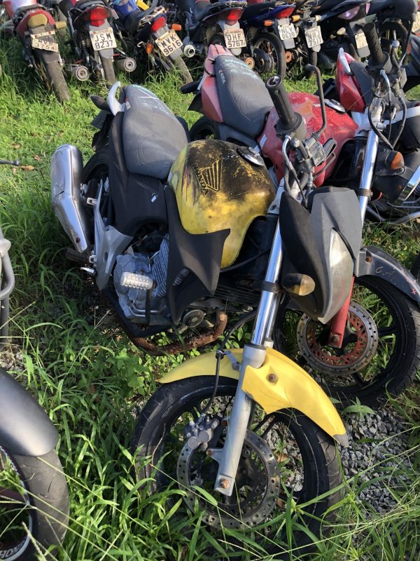 HONDA/CB 300R, ANO/MOD 2011/2012, COR AMARELA, COMBUS GASOLINA, PLACA OHF5C40, RENAVAM 409200174, CHASSI 9C2NC4310CR019524, N° MOTOR NC43E1C019524. (SITUAÇÃO DO VEÍCULO: TANQUE AMASSADO, BANCO RASGADO, CARENAGENS COM DANOS, REGULARIZAÇÃO E TRATAMENTO POR CONTA DO COMPRADOR).