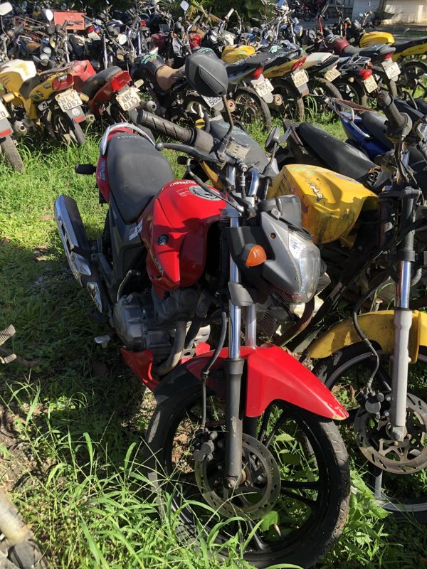 YAMAHA/FACTOR YBR125 K , ANO/MOD 2011/2011, COR VERMELHA, COMBUS GASOLINA, PLACA NMG6222, RENAVAM 307689360, CHASSI 9C6KE1520B0033086, N° MOTOR E3G9E033095. (SITUAÇÃO DO VEÍCULO: PISCAS E CARENAGENS DANIFICADOS, BANCO RASGADO, TANQUE COM RISCOS, CARENAGEM LATERAL AUSENTE, RETROVISOR ESQUERDO QUEBRADO, NUMERAÇÃO DO, CHASSI EM ESTADO AVANÇADO DE OXIDAÇÃO, REGULARIZAÇÃO, TRATAMENTO OU REMARCAÇÃO POR CONTA DO COMPRADOR).