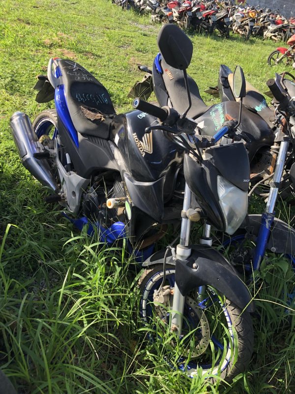 HONDA/CB 300R, ANO/MOD 2013/2014, COR PRETA, COMBUS ALCO/GASOL, PLACA OYV7126, RENAVAM 1010859223, CHASSI 9C2NC4910ER008590, N° MOTOR NC49E1E008590. (SITUAÇÃO DO VEÍCULO: PISCAS DANIFICADOS, BANCO RASGADO, TANQUE COM RISCOS, NUMERAÇÃO DO, CHASSI EM ESTADO INICIAL DE OXIDAÇÃO, REGULARIZAÇÃO E TRATAMENTO POR CONTA DO COMPRADOR).
