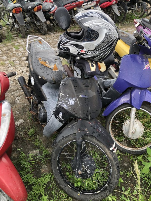 HONDA/C100 BIZ, ANO/MOD 2000/2000, COR AZUL, COMBUS GASOLINA, PLACA MUS1477, RENAVAM 741200023, CHASSI 9C2HA0700YR041361, N° MOTOR HA07E-Y041361. (SITUAÇÃO DO VEÍCULO: VEICULO COM COR DIVERGENTE DA BIN, OSTENTA COR: PRETA, CARENAGENS E FAROL DANIFICADOS, LANTERNA QUEBRADA, RETROVISOR ESQUERDO AUSENTE E DIREITO QUEBRADO, BANCO RASGADO, REGULARIZAÇÃO E TRATAMENTO POR CONTA DO COMPRADOR).