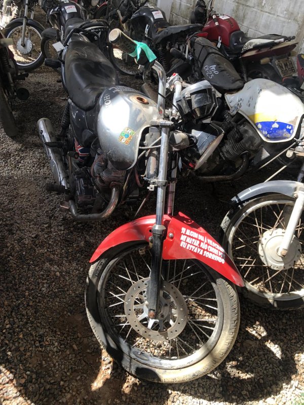 HONDA/CG 125 TITAN KSE, ANO/MOD 2003/2003, COR VERMELHA, COMBUS GASOLINA, PLACA MVA1854, RENAVAM 803795220, CHASSI 9C2JC30213R641613, N° MOTOR JC30E23641613. (SITUAÇÃO DO VEICULO: VEICULO BATIDO, GUIDOM E TANQUE AMASSADOS, CARENAGENS DANIFICADAS, RETROVISOR ESQUERDO QUEBRADO, CHASSI EM ESTADO AVANÇADO DE OXIDAÇÃO, DECALQUE LEGÍVEL, TRATAMENTO, REGULARIZAÇÃO OU REMARCAÇÃO POR CONTA DO COMPRADOR).