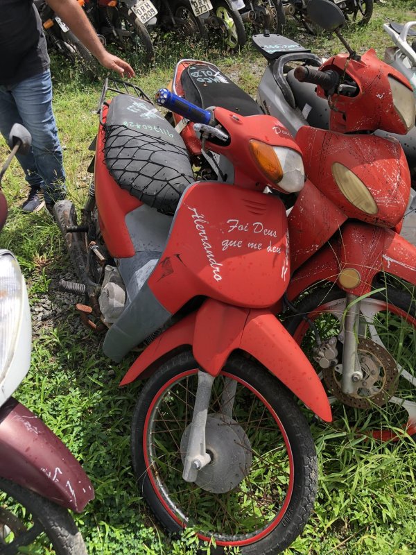 HONDA/C100 BIZ ES, ANO/MOD 1999/2000, COR VERMELHA, COMBUS GASOLINA, PLACA MUW7067, RENAVAM 832740624, CHASSI 9C2HA0710YR215272, N° MOTOR HA07EY215272. (SITUAÇÃO DO VEÍCULO: RETROVISORES AUSENTES, BANCO RASGADO, FAROL QUEBRADO, REGULARIZAÇÃO E TRATAMENTO POR CONTA DO COMPRADOR).