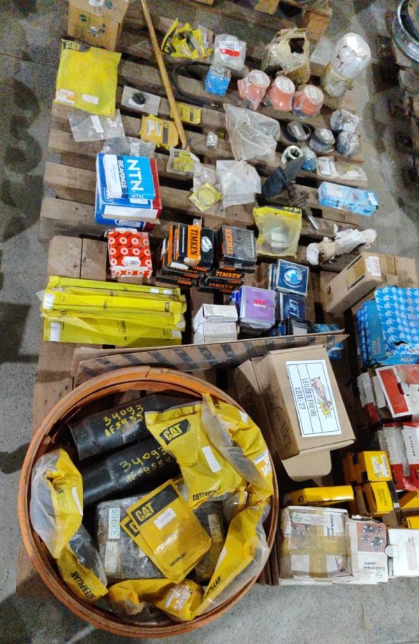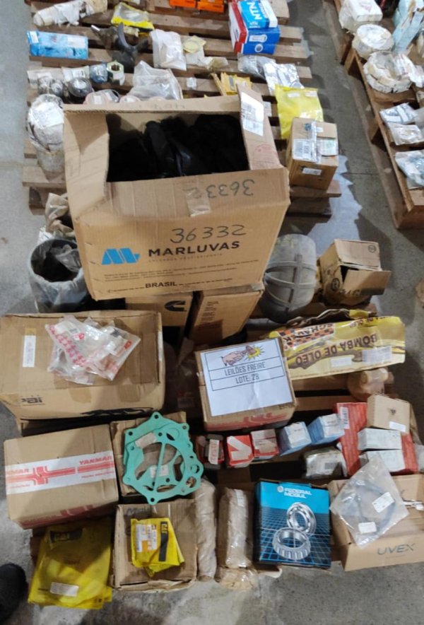 DIVERSAS PEÇAS NOVAS DE ALMOXARIFADO: 2 ROLAMENTO AUTOCOMP ROLOS 22220 CCKW33 (CÓD.10398) PEÇA. // 6 ROLAMENTO ROLOS CONICOS 55176/55437 (CÓD.10625) PEÇA. // 7 CRUZETA TRANSMISSÃO SPICER 5165X (CÓD.12413) PEÇA. // 7 CRUZETA TRANSMISSÃO SCANIA 207563 (CÓD.12414) PEÇA. // 1 MEXEDOR MECÂNICO JACTO 213447 (CÓD.12774) PEÇA. // 4 ROLAMENTO TRANSM ENGESA 2351-090-670 (CÓD.14349) PEÇA. // 4 ROLAMENTO TRANSM ENGESA 2351-090-696 (CÓD.14350) PEÇA. // 2 ROLAMENTO TRANSM ENGESA 2351-090-700 (CÓD.14351) PEÇA. // 1 JOGO REPARO EIXO ENGESA 1915-000-106 (CÓD.14550) PEÇA. // 39 PRISIONEIRO MOTOR ENGESA 2899-900-165 (CÓD.14639) PEÇA. // 2 ROLAMENTO - 2351090688 (CÓD.15236) CONJUNTO. // 1 ANEL VEDAÇÃO MOTOR CUMMINS 3018695 (CÓD.16607) PEÇA. // 3 ENGRENAGEM TRANSM ENGESA 2680-501-672 (CÓD.17043) PEÇA. // 3 ROLAMENTO ROLOS CIL ENGESA 2351-030-090 (CÓD.18836) PEÇA. // 2 ARRUELA ENCOSTO MOTOR CAT 676874 (CÓD.20765) PEÇA. // 3 REPARO SISTEMA HIDRÁULICO CAT 096-6457 (CÓD.20886) PEÇA. // 1 TIRANTE CAT 8P7033 (CÓD.21131) PEÇA. // 4 ARO RODA CAT 2Y4567 (CÓD.24048) PEÇA. // 1 ANEL TRAVA CAT 0949950 (CÓD.24053) PEÇA. // 2 PORCA CAT 8T3652 (CÓD.24440) PEÇA. // 10 HASTE CABEÇOTE MOTOR CAT 5S5918 (CÓD.24894) PEÇA. // 12 BRONZINA BIELA MOTOR CUMMINS 3150011 (CÓD.25109) PEÇA. // 1 ASSENTO DA VALVULA NS 50 51310 (CÓD.25302) PEÇA. // 3 TAMPA CAT 6E4944 (CÓD.25429) PEÇA. // 3 ROLAMENTO ENGESA 2351-090-653 (CÓD.26155) PEÇA. // 6 BICO RESFRIADOR PISTAO 3013591 (CÓD.26527) PEÇA. // 3 TERMINAL FEMEA 2" X 1 1/2" JACTO 231035T (CÓD.26981) PEÇA. // 4 ROLAMENTO TRANSM ENGESA 2351-020-442 (CÓD.28015) PEÇA. // 1 ANEL ACO CAT 1338743 (CÓD.29316) PEÇA. // 12 RETENTOR VEDAÇÃO CAT 9Y8847 (CÓD.31180) PEÇA. // 1 ROAMENTO ENGESA 2351-090-645 (CÓD.31413) PEÇA. // 3 ROLAMENTO ENGESA 1817-040-078 (CÓD.31420) PEÇA. // 2 JUNTA TAMPA ADMISSAO CAT 7C1152 (CÓD.31641) PEÇA. // 2 JUNTA TUBULACAO COMPRES AR CAT 1S7057 (CÓD.31643) PEÇA. // 1 COMPRESSOR AR 7057 (CÓD.32405) PEÇA. // 1 BUCHA CAT 4M1986 (CÓD.32873) PEÇA. // 1 SUITE INTERRUPTOR CAT 203-3220 (CÓD.33523) PEÇA. // 2 TUBO CILINDRO HIDRÁULICO CAT 9S6292 (CÓD.34093) PEÇA. // 7 PLACA EMBREAGEM CAT 1145772 (CÓD.34390) PEÇA. // 1 MANGUEIRA LONADA RET YANMAR NS9059143 (CÓD.34936) PEÇA. // 4 COLAR VALVULA YANMAR NS5011190 (CÓD.36648) PEÇA. // 1 COPO VISOR SIST LUBRIFIC YANMAR NS5034530 (CÓD.36649) PEÇA. // 12 PARAFUSO ENGESA 2891-400-023 (CÓD.38153) PEÇA. // 3 ANEL BORRACHA MOTOR CASE 86598104 (CÓD.38334) PEÇA. // 2 SUPORTE REVERSAO CAT 6K3179 (CÓD.39081) PEÇA. // 1 TAMPA COMBUSTIVEL CAT 109-5862 (CÓD.39731) PEÇA. // 1 BOTAO CHAVE ROTATIVA CAT 7Y9390 (CÓD.39970) PEÇA. // 3 VARETA VALVULA YANMAR NS5014400 (CÓD.39976) PEÇA. // 1 TAMPA TANQUE OLEO YANMAR NS5055030 (CÓD.39977) PEÇA. // 8 ELO EMBREAGEM CAT 2H5046 (CÓD.42669) PEÇA. // 2 MANCAL ENGRENAGEM TRANSM CAT 114-5829 (CÓD.45846) PEÇA. // 1 ROLAMENTO ESFERA CAT 1145830 (CÓD.45850) PEÇA. // 12 CAMISA INJETOR CUMMINS 147056 (CÓD.45908) PEÇA. // 4 MANCAL FERRO FUNDIDO TIPO APOIO ASE 05 (CÓD.46296) PEÇA. // 2 MANCAL RADIAL 90X115X90 TGM 8.43.0540.992 (CÓD.47483) PEÇA. // 1 ENGRENAGEM CAT 1145844 (CÓD.48815) PEÇA. // 4 ANEL VEDACAO CAT 8C3081 (CÓD.48821) PEÇA. // 8 FILTRO CAT 2314486 (CÓD.49213) PEÇA. // 1 TUBO CARDAN GASCOM 0140015 (CÓD.51292) PEÇA. // 10 PARAFUSO SEXTAVADO YANMAR HB6X20 (CÓD.52476) PEÇA.