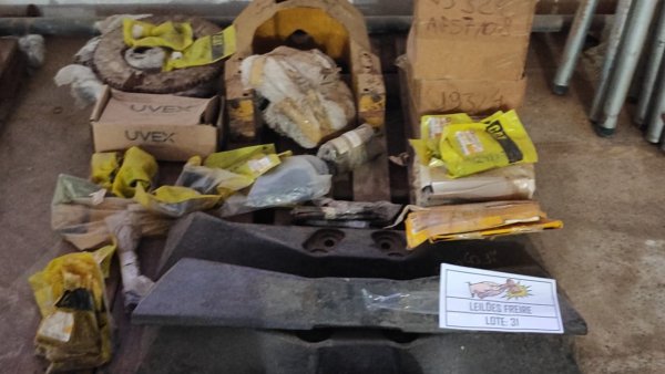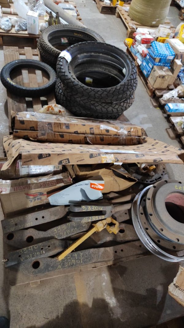 DIVERSAS PEÇAS NOVAS DE ALMOXARIFADO: 1 CARDAN ARTICUL CIRCULO LÂMINA CAT 7D1741 (CÓD.12558) PEÇA. // 28 VÁLVULA CILINDRO (CÓD.14253) PEÇA. // 1 LÂMINA TRÊS FACAS STIHL 41197134100 (CÓD.14672) PEÇA. // 6 FUSIVEL LIMITADOR CORRENTE TIPO TED 6 15/17 5 KV 2 ÂMPERES 40KA (CÓD.14851) PEÇA. // 3 PNEU MOTO DIANTEIRO 275-21 MT-40 (CÓD.15727) PEÇA. // 5 PNEU MOTO TRAZEIRO 4/10-18 (CÓD.15735) PEÇA. // 3 ELEMENTO FILTRANTE SECADORA AR COMPRESSÃO MODELO ARS 610RF - ENIPLAN (CÓD.17026) PEÇA. // 1 TERMINAL AC-51 (CÓD.17654) PEÇA. // 1 ARO RODA TRASEIRA HONDA 42701KFC900 (CÓD.19015) PEÇA. // 2 TAMPA EM BRONZE P/ BOMBA KSB 150-33 (CÓD.20177) PEÇA. // 1 PNEU MOTO TRAZEIRO 80/100-14 (CÓD.22236) PEÇA. // 1 CARCAÇA TRANSMISSÃO CAT 4S5932 (CÓD.26393) PEÇA. // 2 GARFO DIREITO LEVANTE VALTRA 81697100 (CÓD.33304) PEÇA. // 2 BRACO APALP ESQ VALTRA 82062010 (CÓD.33399) PEÇA. // 2 BRACO APALP DIREITO VALTRA 82061910 (CÓD.33400) PEÇA. // 1 MANCAL DIANTEIRO VALTRA 222051 (CÓD.37631) PEÇA. // 1 VIDRO CABINE CAT 1176931 (CÓD.46929) PEÇA. // 3 DISCO FREIO ENGESA 5106-022-269 (CÓD.47625) PEÇA.