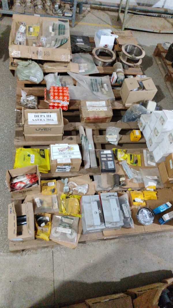 DIVERSAS PEÇAS NOVAS DE ALMOXARIFADO: 6 PROTETOR BORRACHA CAT 6V2761 (CÓD.17658) PEÇA. // 2 ROTOR ELÉTRICO CAT 0R5534 (CÓD.19324) PEÇA. // 25 ANEL VEDAÇÃO SISTEMA HIDR CAT 4J0520 (CÓD.19520) PEÇA. // 14 ANEL VEDAÇÃO SISTEMA HIDR CAT 4M8303 (CÓD.19556) PEÇA. // 8 ANEL O´RING DIFERENCIAL COROA CAT 2S1914 (CÓD.21259) PEÇA. // 1 COBERTURA PEDAL CAT 1R6699 (CÓD.22204) PEÇA. // 1 ADESIVO CAT 946653 (CÓD.22313) PEÇA. // 1 PLACA SEPARADORA EMBREAGEM CAT 2H4338 (CÓD.22832) PEÇA. // 4 CHAVETA ENGRENAGEM CAT 1B8742 (CÓD.25023) PEÇA. // 3 MANGUEIRA MOTOR CAT 5P6412 (CÓD.26338) PEÇA. // 1 RETENTOR VEDAÇÃO CAT 3S1748 (CÓD.26370) PEÇA. // 2 CRUZETA CAT 7H3958 (CÓD.36790) PEÇA. // 7 ELETRODUTO GALV PESAD 1 1/2" C/ LUVA (CÓD.37387) PEÇA. // 1 GARFO RODA GUIA CAT 2P7984 (CÓD.40244) PEÇA. // 8 GUIA VÁLVULA MOTOR CAT 7N2051 (CÓD.42491) PEÇA. // 2 COTOVELO CAT 2P6173 (CÓD.43504) PEÇA. // 3 SAPATA FREIO CAT 8E8835 (CÓD.44428) PEÇA. // 2 PRISIONEIRO CAT 2P2537 (CÓD.44693) PEÇA. // 1 ENGRENAGEM TRANSMISSÃO CAT 3P3453 (CÓD.45325) PEÇA. // 1 ENGRENAGEM DIFERENCIAL CAT 1P3188 (CÓD.45326) PEÇA. // 4 COXIM AMORTECEDOR CAT 2144285 (CÓD.46709) PEÇA. // 2 ENGRENAGEM CAT 1H8382 (CÓD.47293) PEÇA. // 8 PARAFUSO CAT 9M4259 (CÓD.47714) PEÇA. // 8 PARAFUSO MOTOR CAT 3P0208 (CÓD.47717) PEÇA. // 18 PARAFUSO CAT OL2315 (CÓD.47722) PEÇA. // 6 PARAFUSO FIXAÇÃO CAT 5F6044 (CÓD.47725) PEÇA. // 6 PARAFUSO CAT 4F0411 (CÓD.47726) PEÇA. // 30 PRISIONEIRO CAT 2D8154 (CÓD.49220) PEÇA.