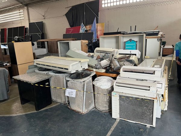 DIVERSOS CONDICIONADORES DE AR, ARMÁRIOS EM MADEIRA, CADEIRAS P/ ESCRITÓRIO, 01 MESA P/ ESCRITÓRIO, 02 FRIGOBARES E GAVEVETEIROS DE MADEIRA.